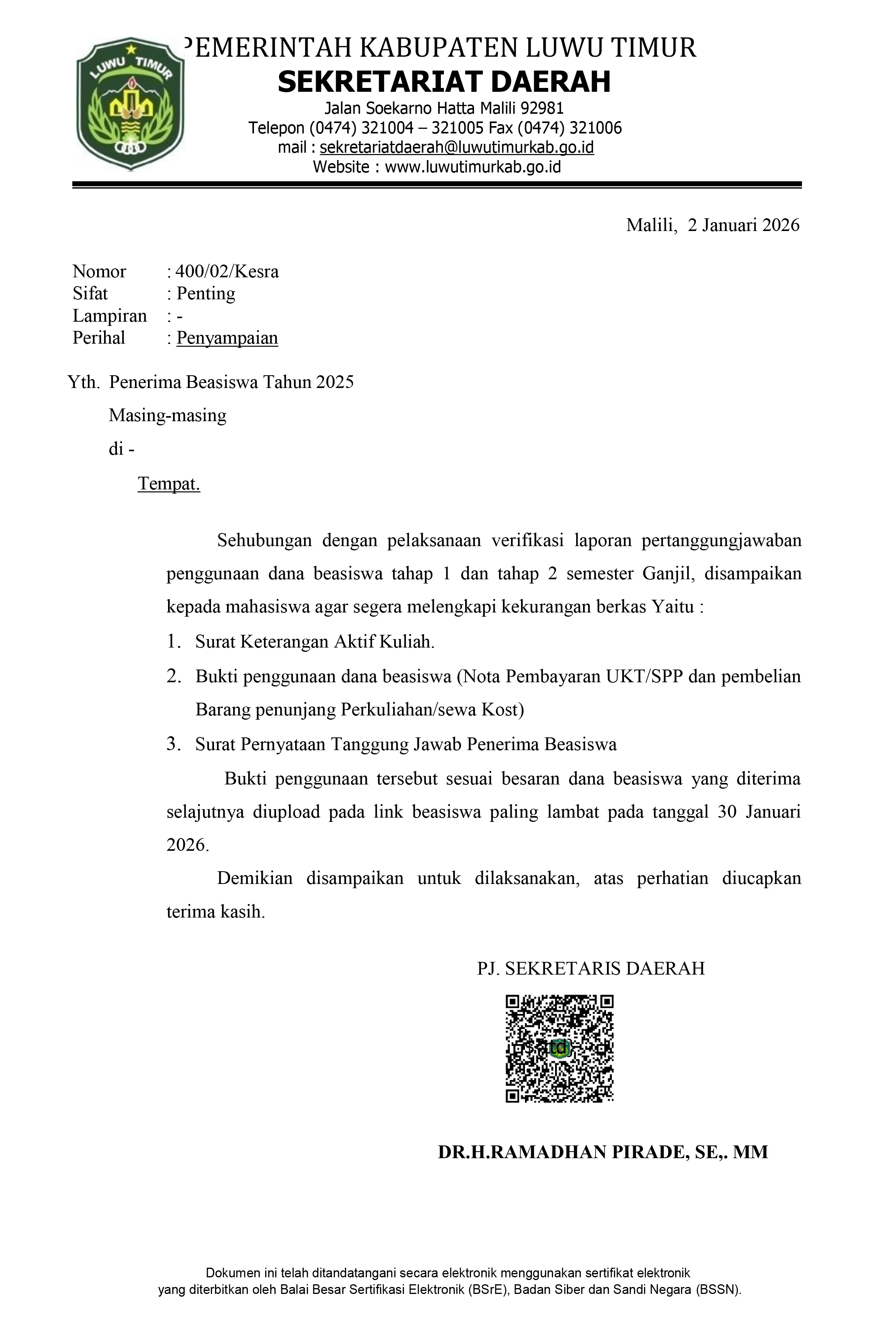 Selamat datang di website resmi pendaftaran beasiswa Kabupaten Luwu Timur!